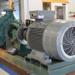 Révision d'un moteur 45kW de pompe. Montage sur le châssis et alignement au laser du tout en atelier.